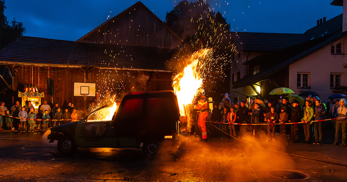 Am Freitagabend fand die jährliche Hauptübung statt. Die rund 50 Feuerwehrmänner und – frauen trafen gegenüber vom Chäslädeli auf ein brennendes Auto, dies war zum Erstaunen der zahlreich erschienenen Zuschauenden schnell gelöscht. Doch natürlich gab es noch mehr zu tun; zwei Personen waren in einem Auto eingesperrt, welches auf einem Betonblock stand; unter dem Betonblock lag ein eingeklemmte Person; daneben ein umgefallenen Baum. Zudem war die verschlossene Scheune gefüllt mit Rauch; darin befanden sich mehrere Personen, welche gesucht und gerettet werden mussten.
